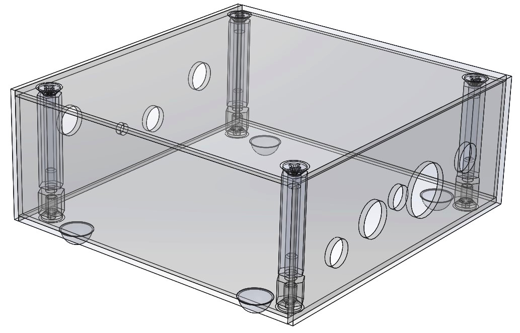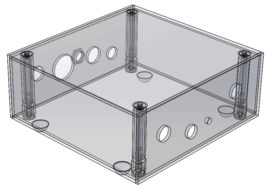 Below are the chassis fabrication documents for the CalQRP club version of the Wilderness SST Transceiver. It is a clam shell design to accommodate components protruding from the front and rear of the pcb. Any revisions or corrections to the documents will only be made here.