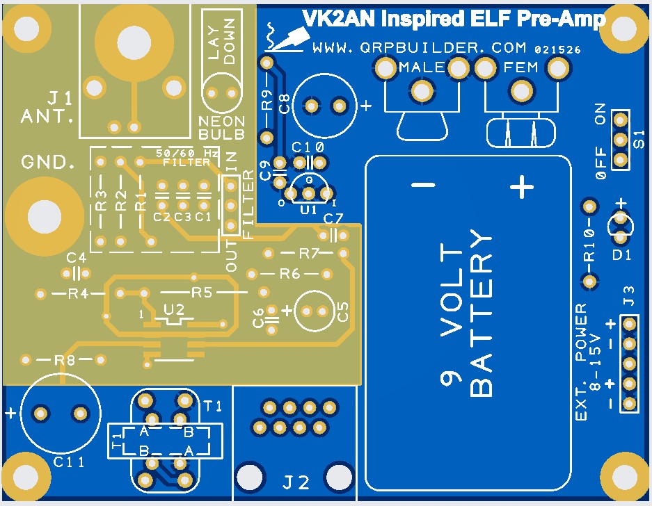 Being new to the group and ELF/VLF in general, I was impressed with the simplicity of Peter’s (VK2AN) ELF pre-amp circuit he posted in the vlf.io group. I contacted him and asked if I could make a partial kit available to the interested community. After many emails, he helped me to to understand the unique orientation and requirements of mounting the LMP7721 OpAmp on a pcb.